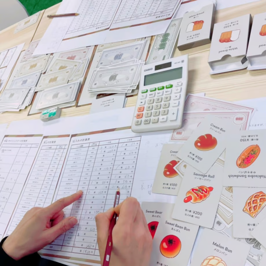 「No.1ベーカリー」というボードゲームを使用し、マーケティングや起業、商売、儲けの仕組みをゲーム感覚で学べる研修です。